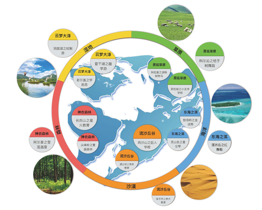 部落栖息区域,根据地球生态系统进行划分:神农森林-森林、云梦大泽-湿地、东海之滨-海洋、流沙丘谷-沙漠、居延草原-草原。