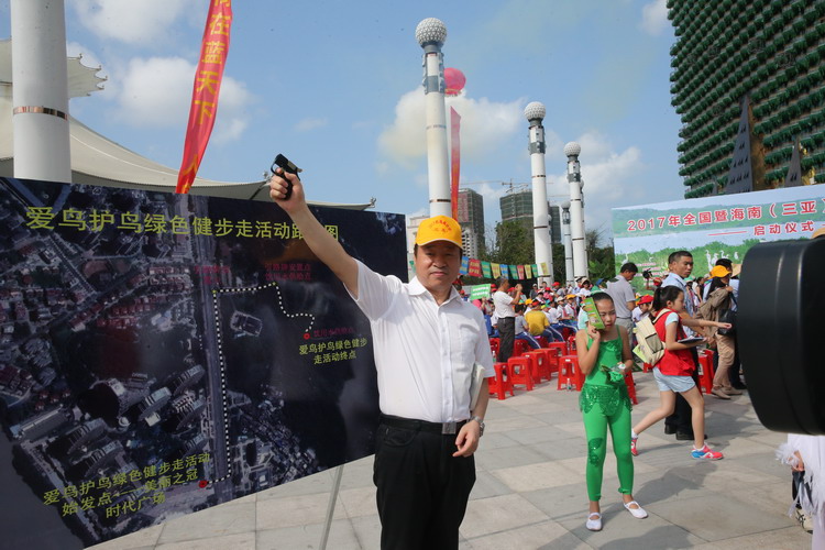 海南省人大常委会康耀红副主任为爱鸟护鸟绿色健步走鸣枪